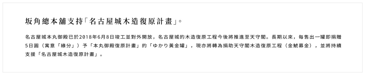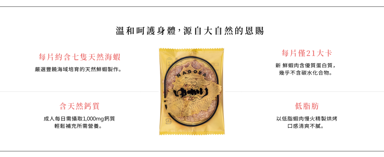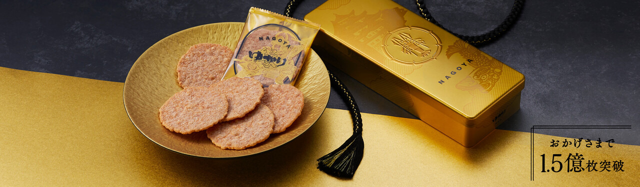 德川家與海老煎餅淵源,始於其前身「蝦肉魚板」。 1666年(寬文六年)獻予尾張藩主德川光友公時,即以極致美味廣受讚譽。坂角總本舖始祖坂角次郎經反覆改良,將此物昇華為全新煎餅,即為「緣〈ゆかり〉」元祖厚燒海老煎餅之原型。 為讓這款與德川家淵源深厚的蝦煎餅成為廣受喜愛的名古屋伴手禮,〈ゆかり〉黃金罐特以名古屋城鯱為靈感,採用金光閃閃的罐身,展現名古屋獨有的華麗意象。